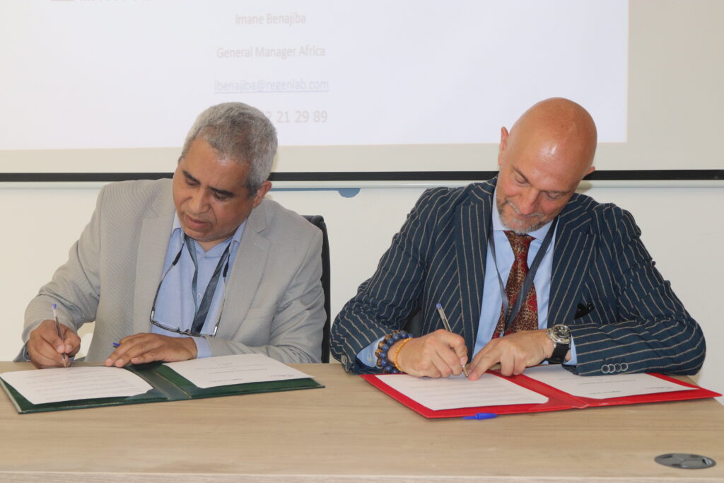 وفي سياق موازٍ، تم الإعلان عن توقيع اتفاقية شراكة مهمة بين كلية الطب والصيدلة بالعيون وشركة RegenLab السويسرية، المتخصصة في تقنيات الطب التجديدي وهندسة الأنسجة. وتشكل هذه المبادرة خطوة استراتيجية لدعم البحث العلمي وتعزيز التكوين في مجال الطب المتقدم.